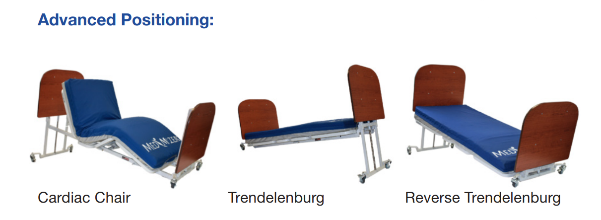 - Advanced features; cardiac chair positioning, trendelenburg / reverse trendelenburg