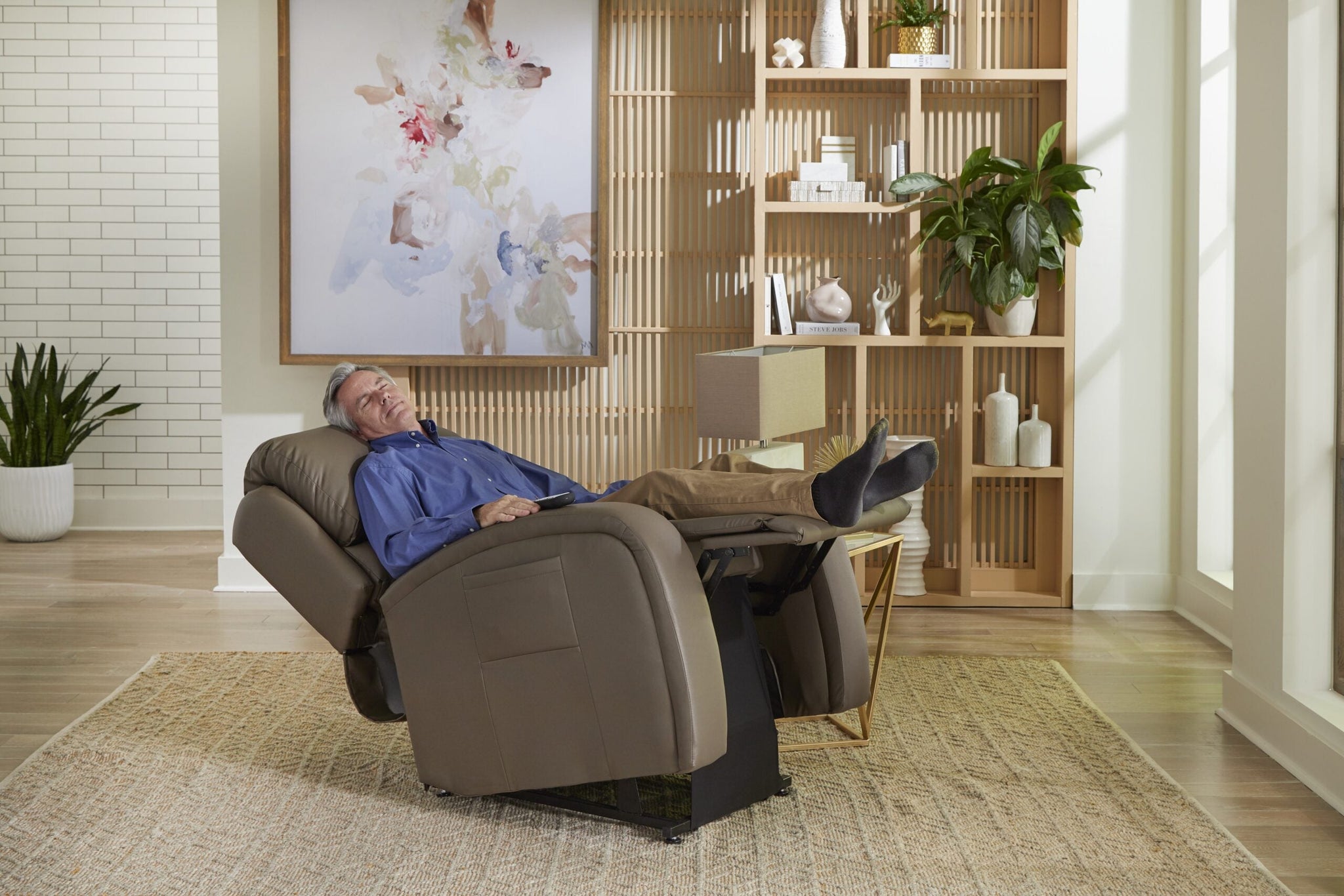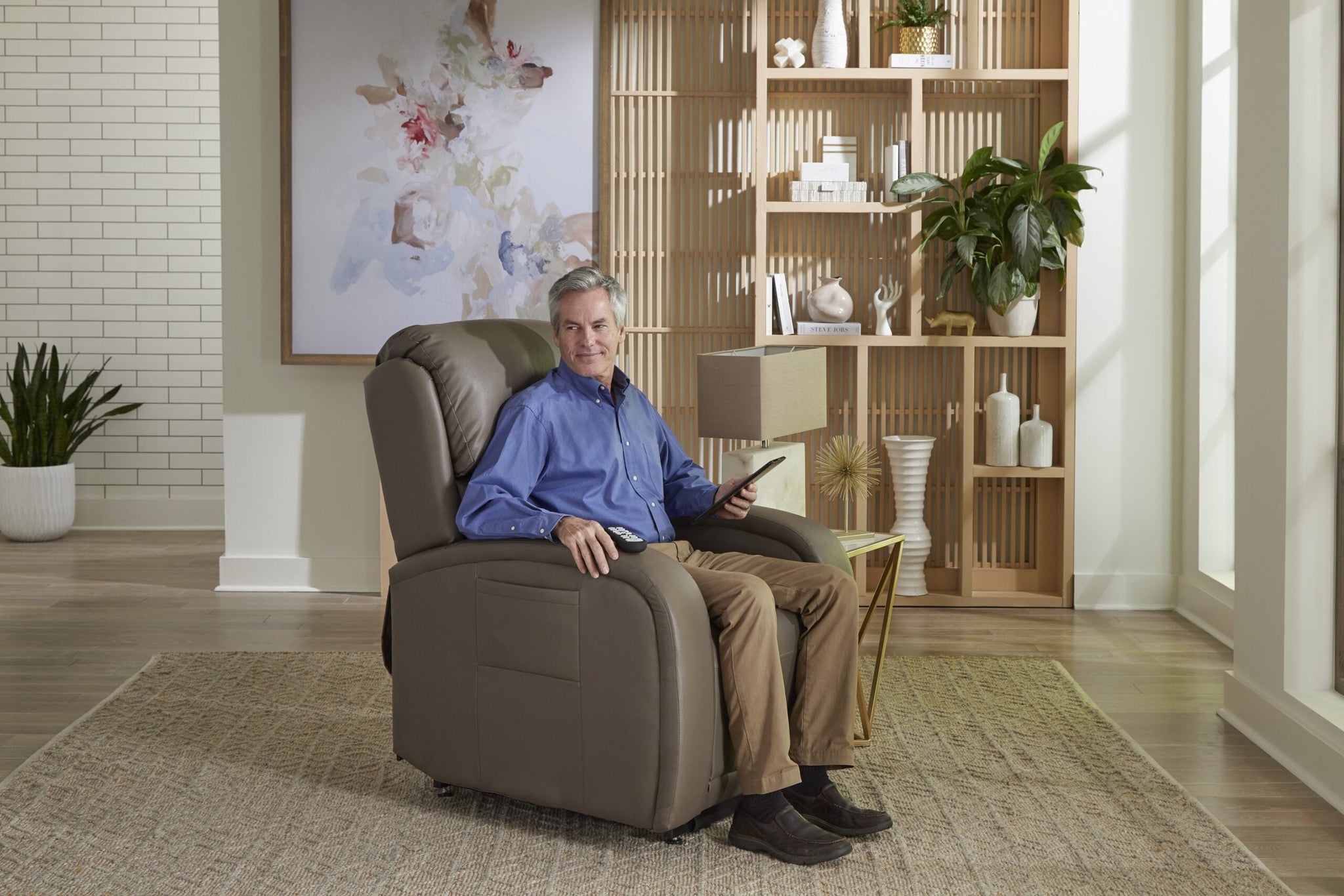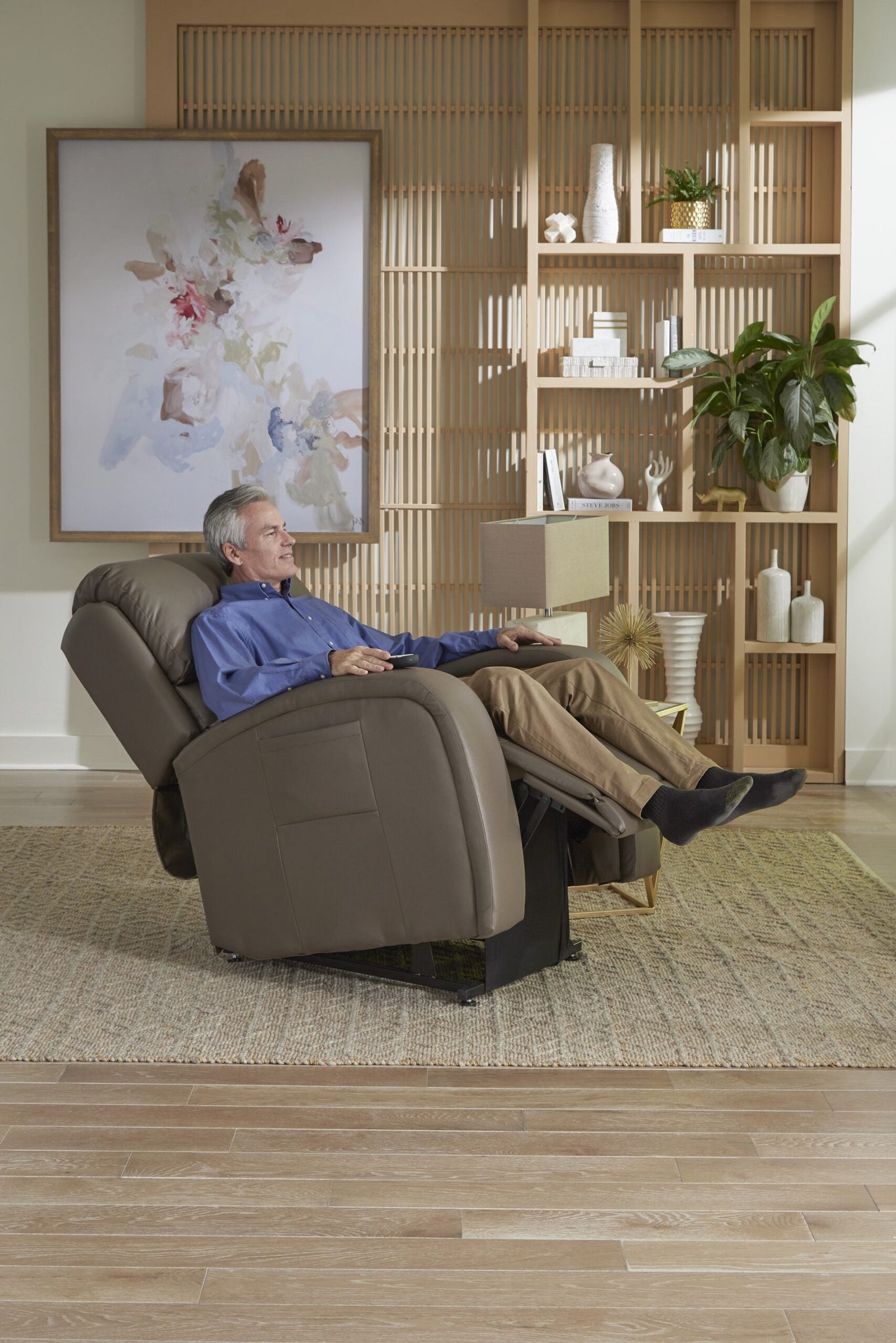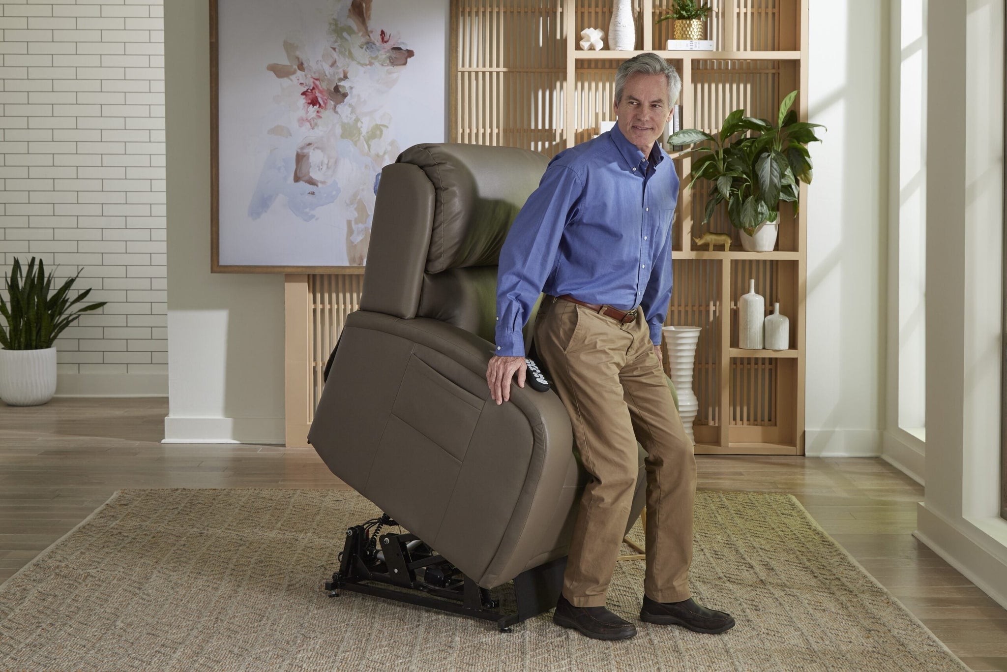 The new EZ Sleeper with Twilight positioning technology features a modern, sleek design with a stylish track arm for ultimate comfort! Elevate and circulate in the PR-761, the world’s most advanced power positioning lift recliner. Golden’s patented 5-motor system provides unique, rejuvenating positions along with our PowerPillow™ headrest and power lumbar for support where you need it most. Healthy benefits include being able to elevate the feet above the heart while experiencing the true feeling of weightlessness. Twilight positioning relieves pressure points and encourages proper posture by encouraging the natural “S” shape of the spine. The AutoDrive™ hand control offers four programmable positioning buttons, so you can effortlessly glide into your favourite comfort positions at the touch of one button. Visit your local dealer to feel the Golden comfort difference today!