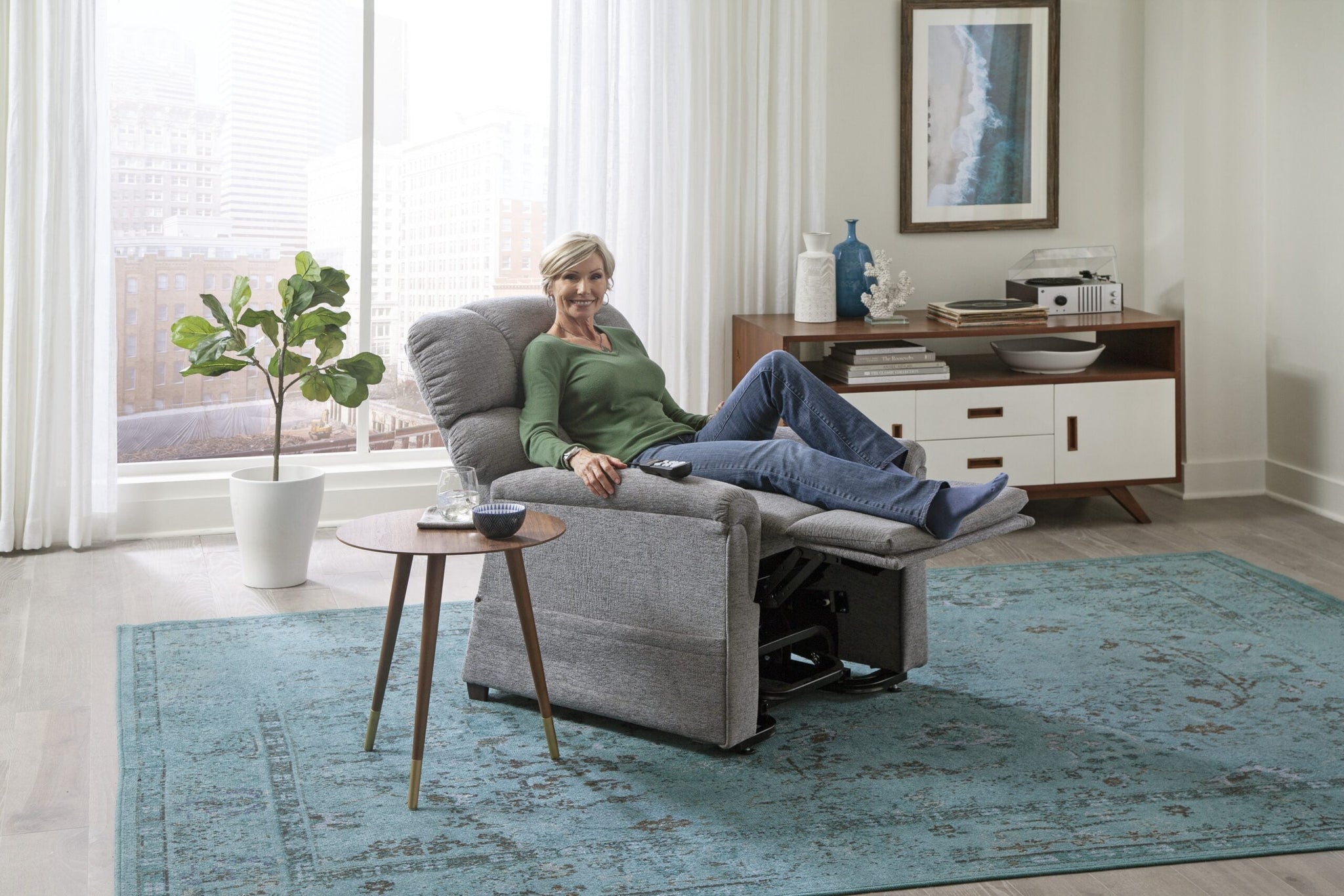 The new PR545 power lift recliner expands Golden’s long-standing, popular Comforter model with MaxiComfort® Positioning and now Twilight Technology. This luxurious chair offers three Comfort Zones. Zones 1 and 2 work together for individualized positioning of the upper and lower body, along with Comfort Zone 5 to elevate your wellness comfort experience with our patented Twilight Technology. Discover full body revitalization and relief like you’ve never felt before with our exclusive Zero Gravity+ (ZG+) positioning technology. Our patented wellness technology provides the perfect 30-degree tilting motion, cradling your body to recline in the optimal ergonomic supportive position. The PR545 comes in three sizes to suit everyone’s needs – medium, large, and tall.