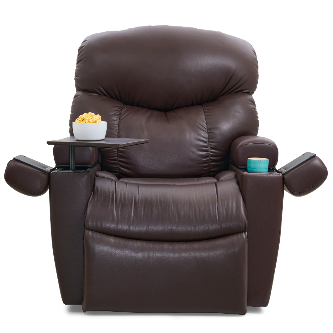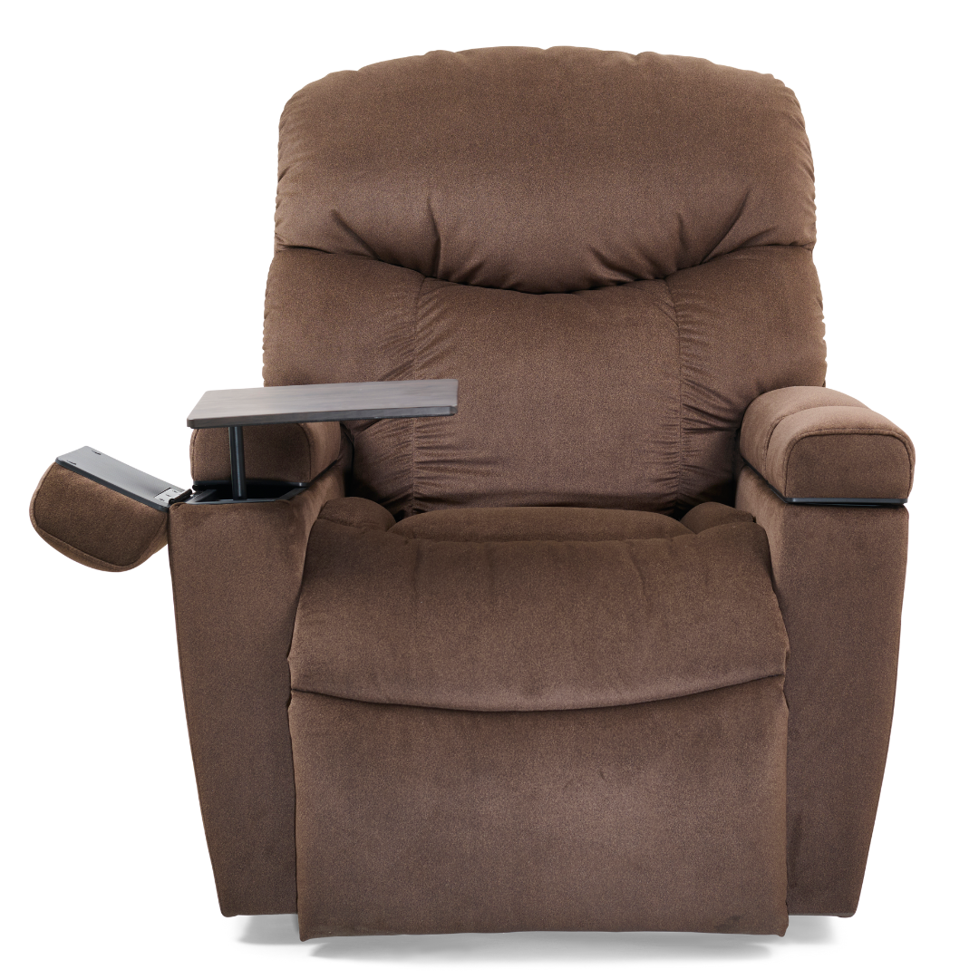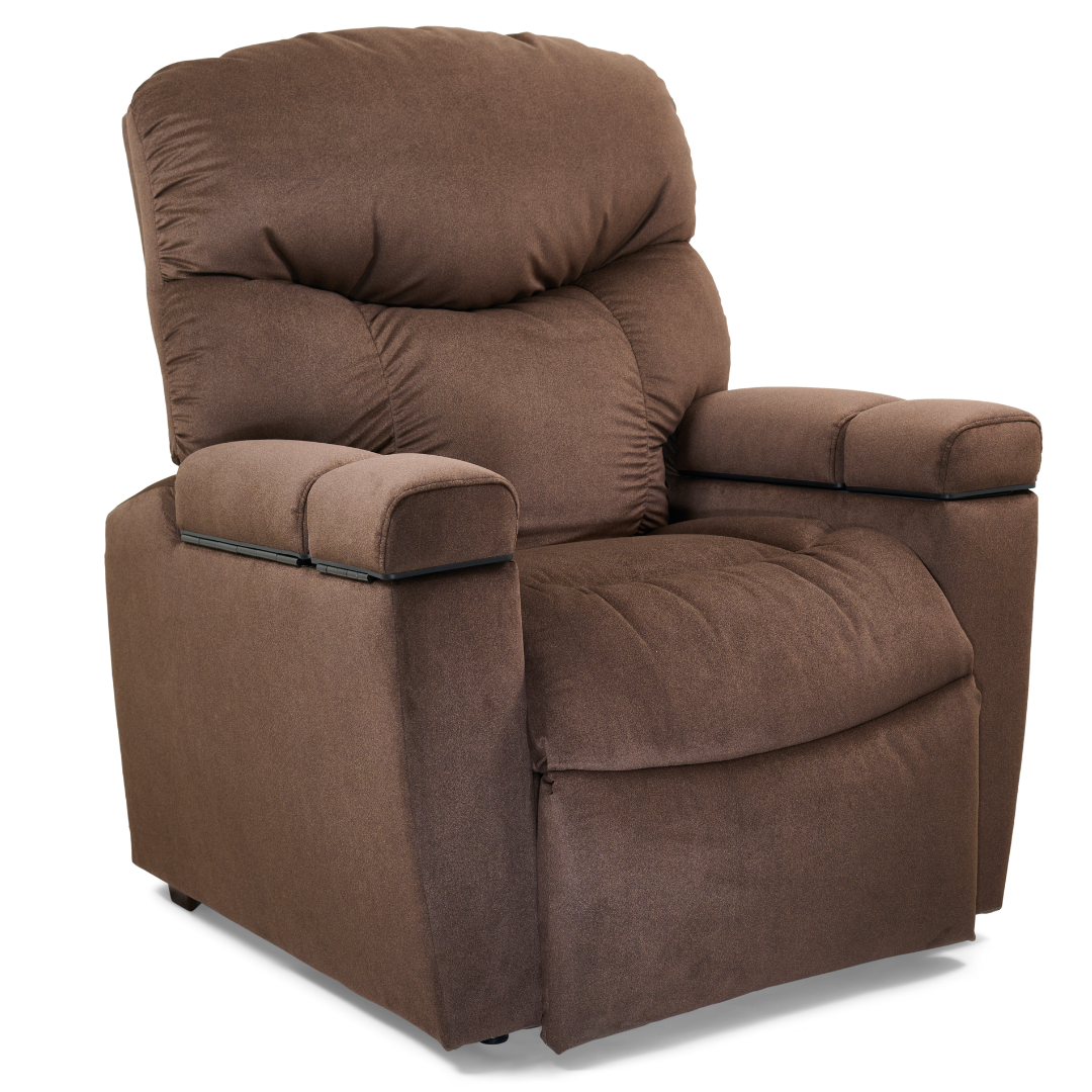 Relax and recharge in comfort and style with the Cloud+ Power Lift Recliner. The Cloud+ features a stylish top load, open-arm design with a plush seamed back and our popular posture-encouraging bucket seat to conform to your body