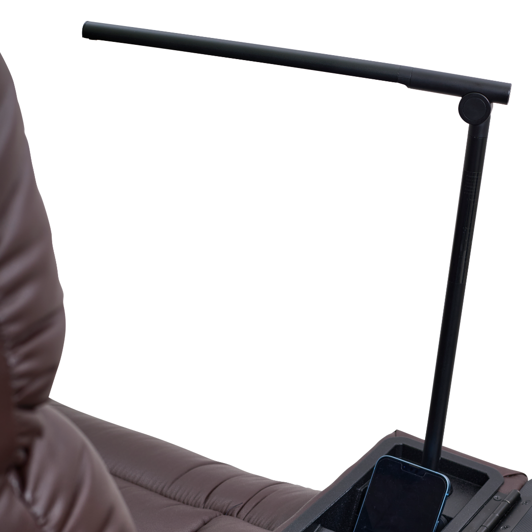 - Open Split Arm Design with Storage