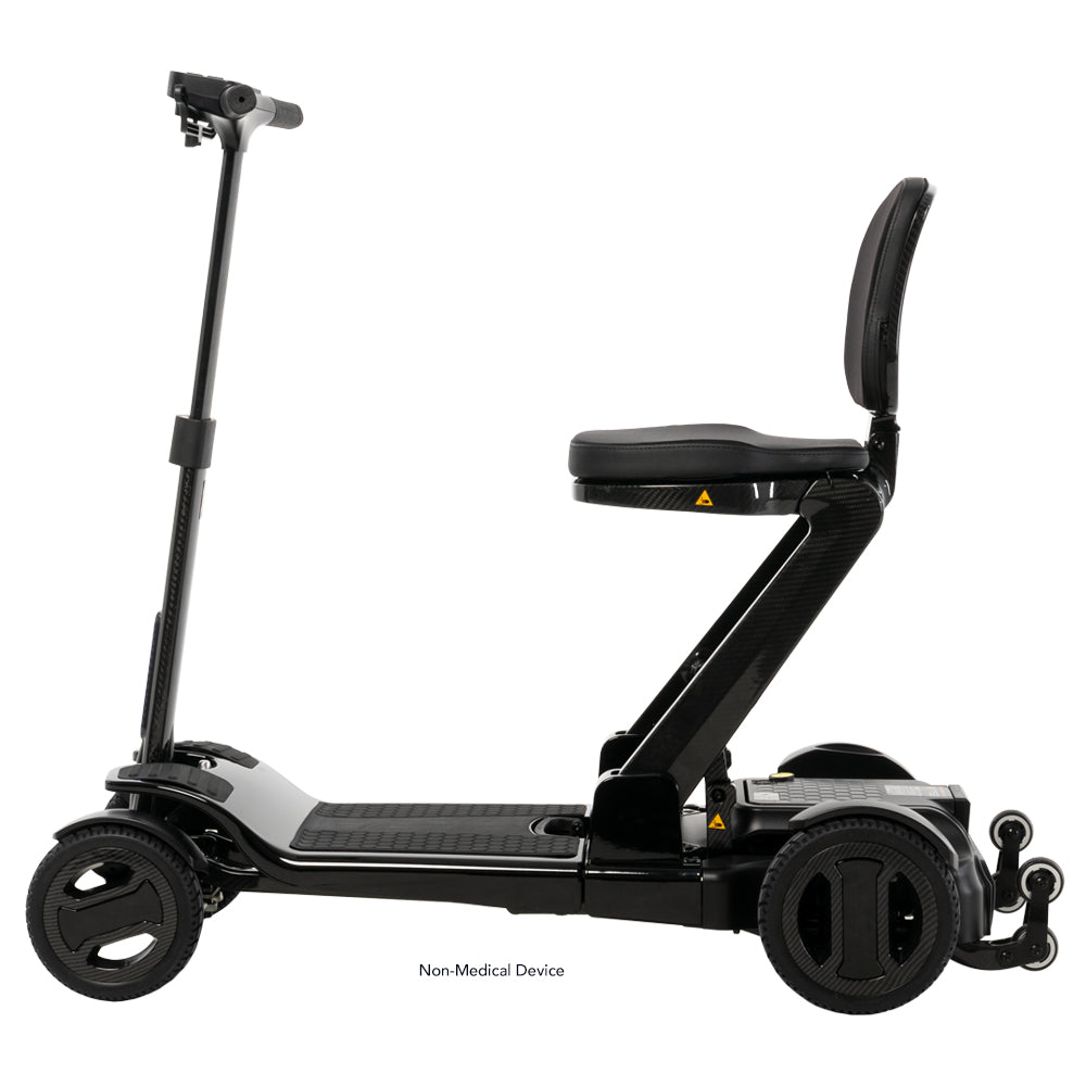 Harnessing the power of its full carbon fiber frame, the Go Go® Carbon offers exceptional portability in a four-wheel scooter. It weighs just 35 pounds without its (lithium) battery, folds down in seconds for convenient transport and storage, and can be towed like luggage through airports and other environments.