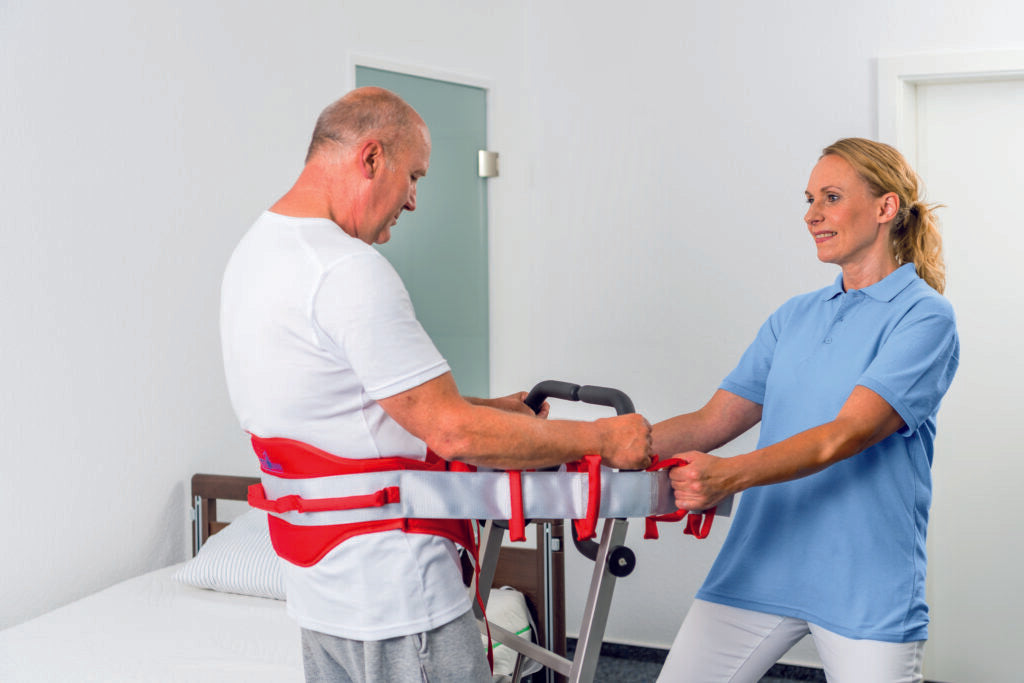Alpha Transfer Aid Merlin is a simple and safe aid for assisting people with restricted mobility to stand up and change position. It enables carers to transfer clients in an easier, energy-saving and back-friendly manner and it can also mobilise the remaining strength in the client’s arms and legs, if applicable, and also give them a feeling of security. The ingenious design in conjunction with the smooth-running rollers allows a particularly safe and easy handling of the Alpha Transfer Aid Merlin. The use of high-quality, rust-free stainless steel also allows maximum stability even in extremly humid environments; for instance – in and out of showers.