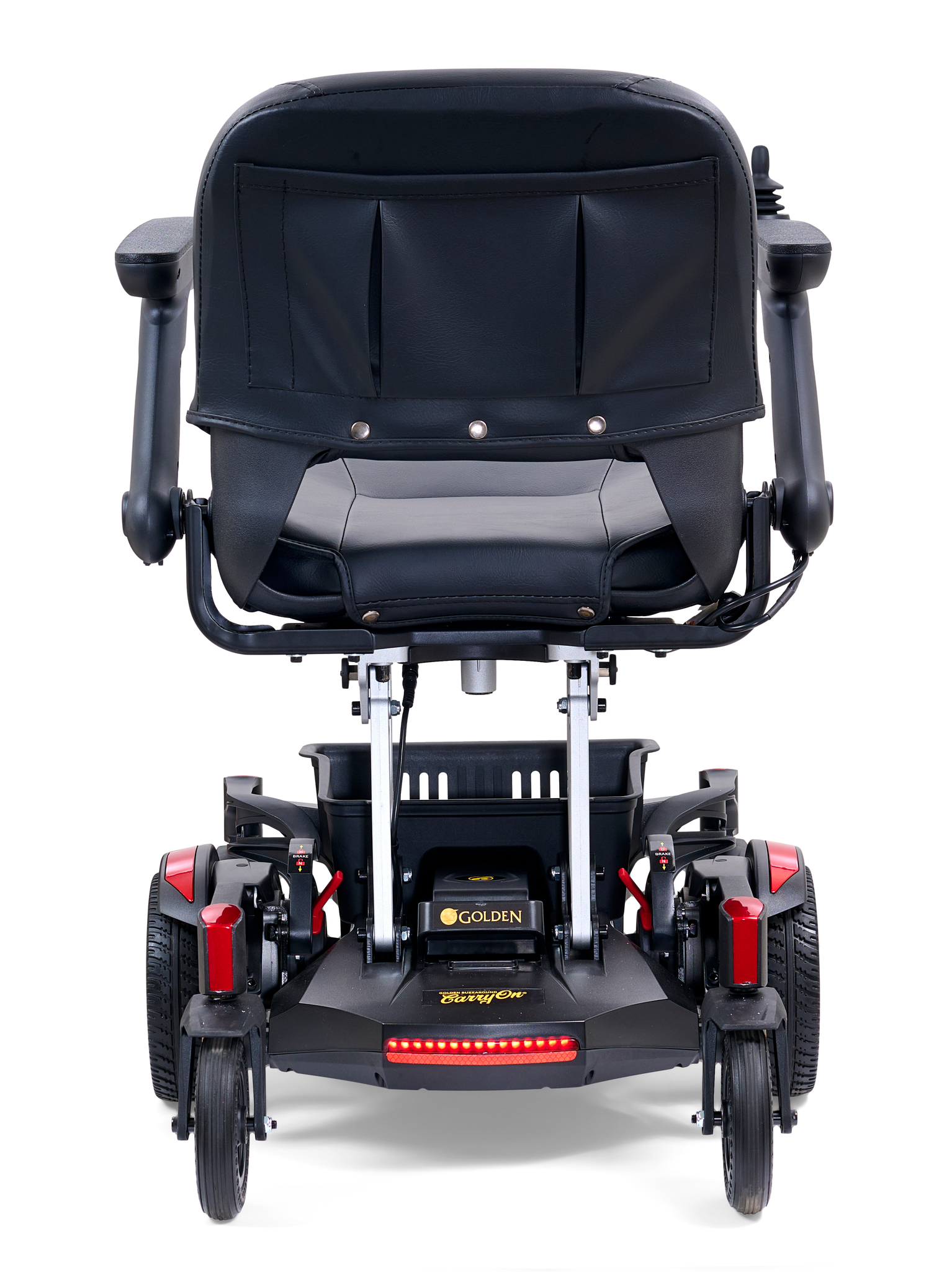 The new Buzzaround CarryOn folding power wheelchair is truly in a class of its own! This unique power chair is super portable with a 21” turning radius and center wheel drive for optimal coverage and maneuverability making